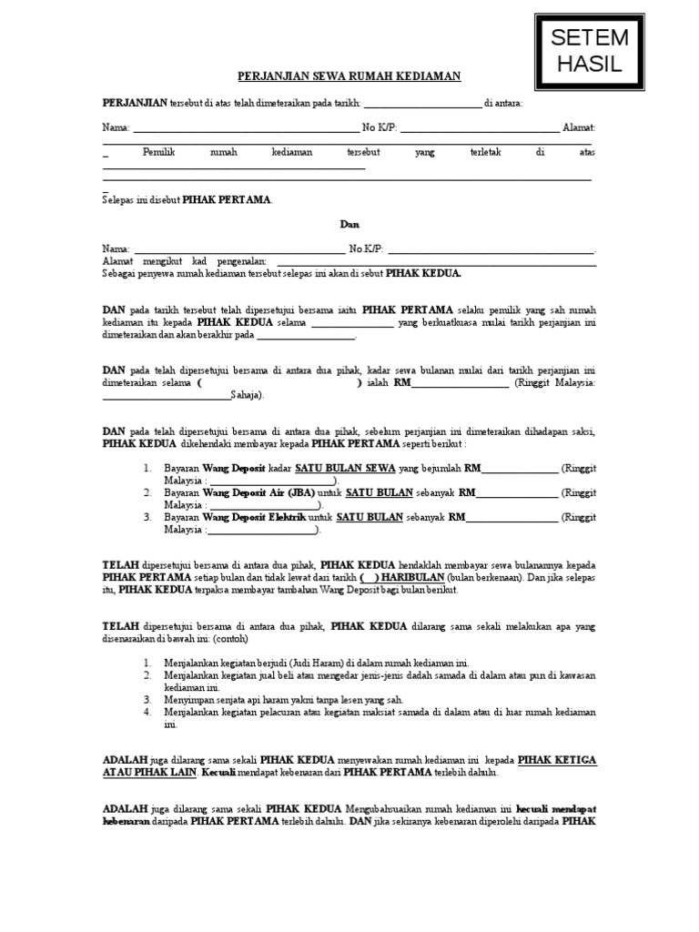 Satu salinan kad pengenalan pemilik rumah (permohonan sewaan individu). Ketahui surat perjanjian sewa rumah secara detail di sini agar aman. Surat perjanjian kontrak rumah akan membuat pihak penyewa dan yang menyewakan dilindungi oleh hukum. Anda sedang mencari rumah sewa pertama? Benda macam ni unexpected kan?